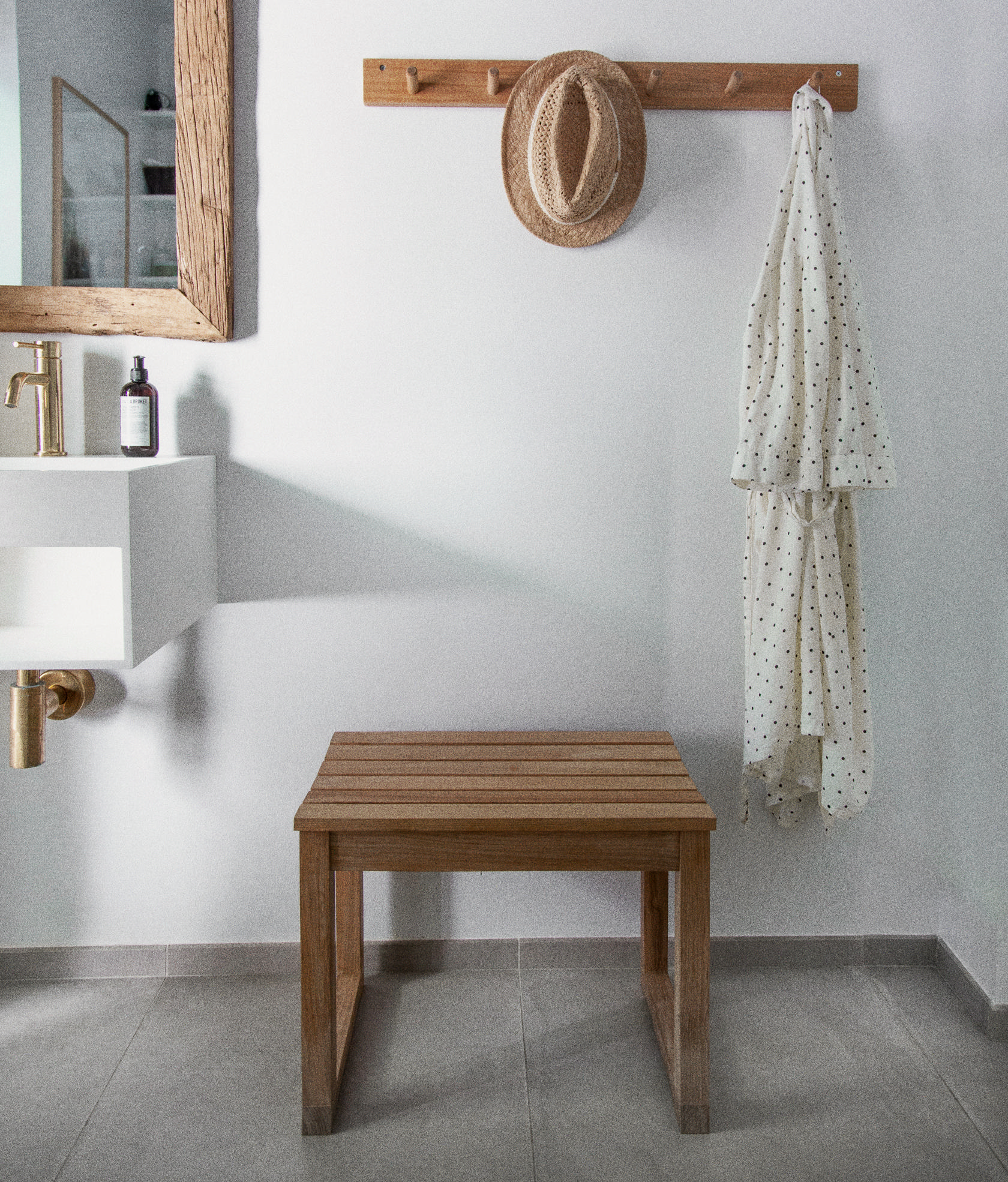 The stool works as a flexible seat or a practical, calm feature in the room – ideal in the bathroom, hallway, by lounge furniture, or on the terrace, where you need a piece that can be easily moved and used in various ways.