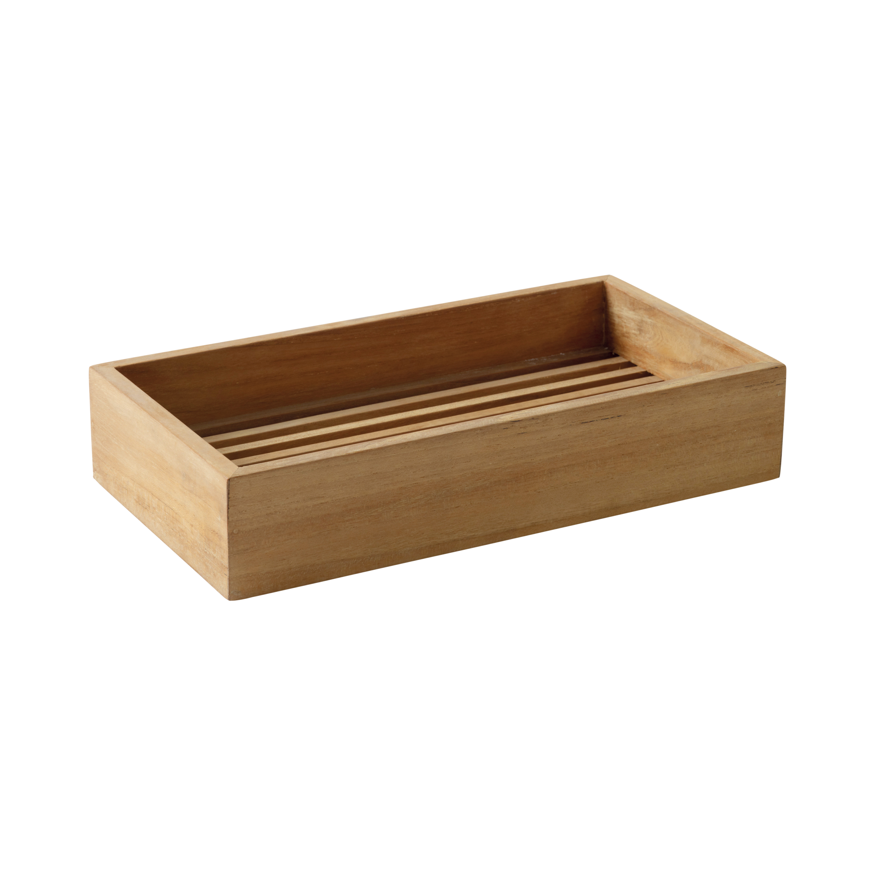 A simple and functional tray crafted from solid teak, designed to keep daily items organised and to bring a sense of calm to the bathroom.