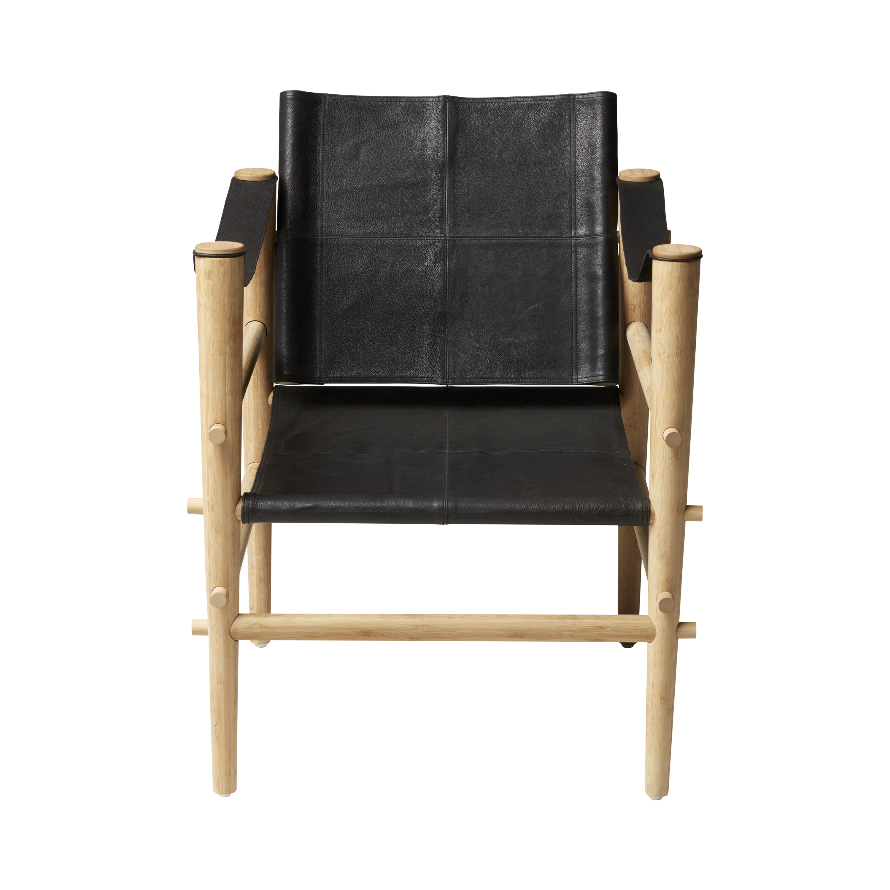 The low, inviting design gives the chair a calm and relaxed expression, while the bamboo frame adds warmth, structure and natural character. The black leather creates a clear contrast and gives the chair a more graphic and modern expression with depth, calm and sensorial comfort.