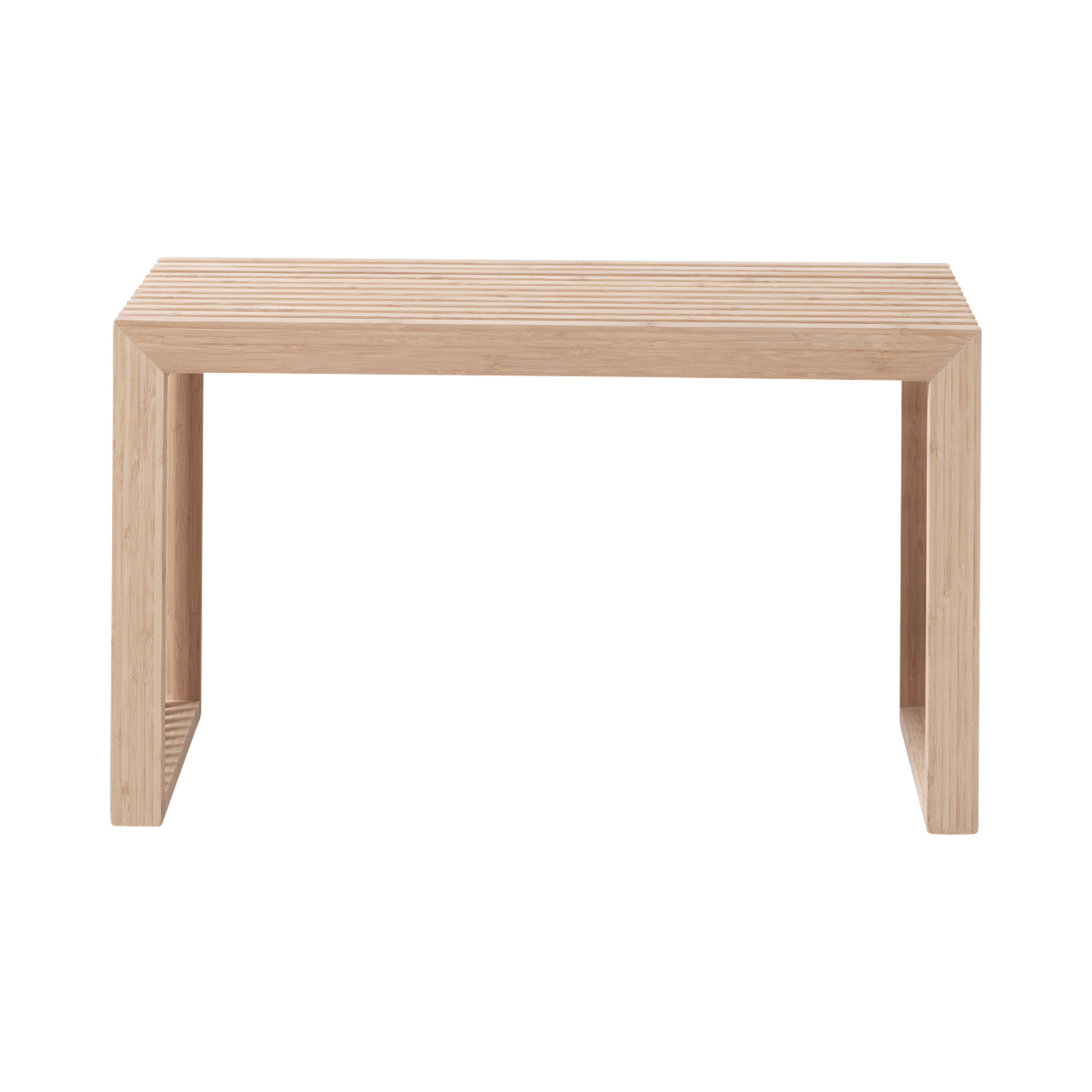 Graphic simplicity in a light format. The short Rib bench in bamboo is designed to fit anywhere – as an extra seat, a small table, or a decorative detail in the interior.