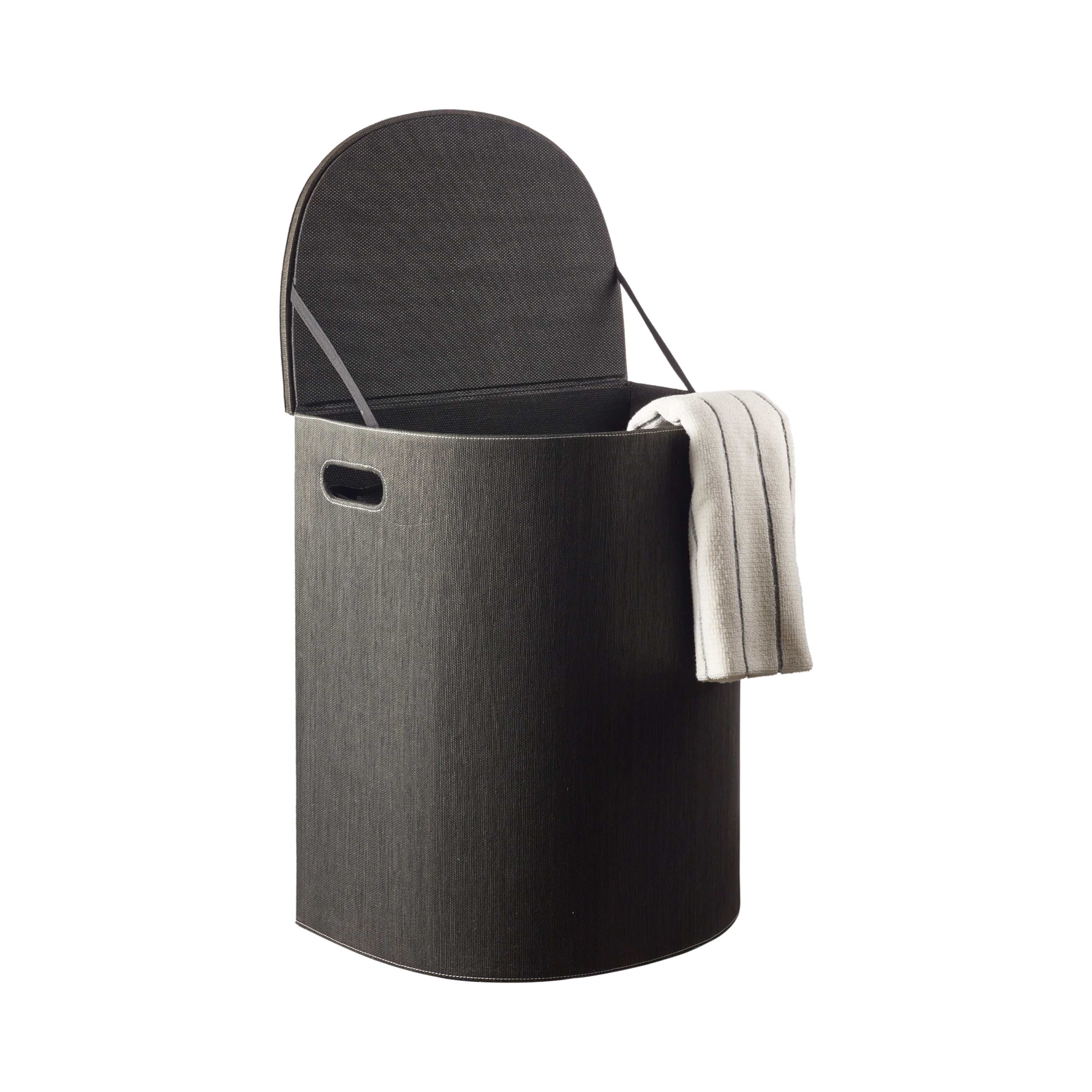 The clean black colour adds graphic calm and makes the laundry basket easy to combine with other materials and colours in the interior.