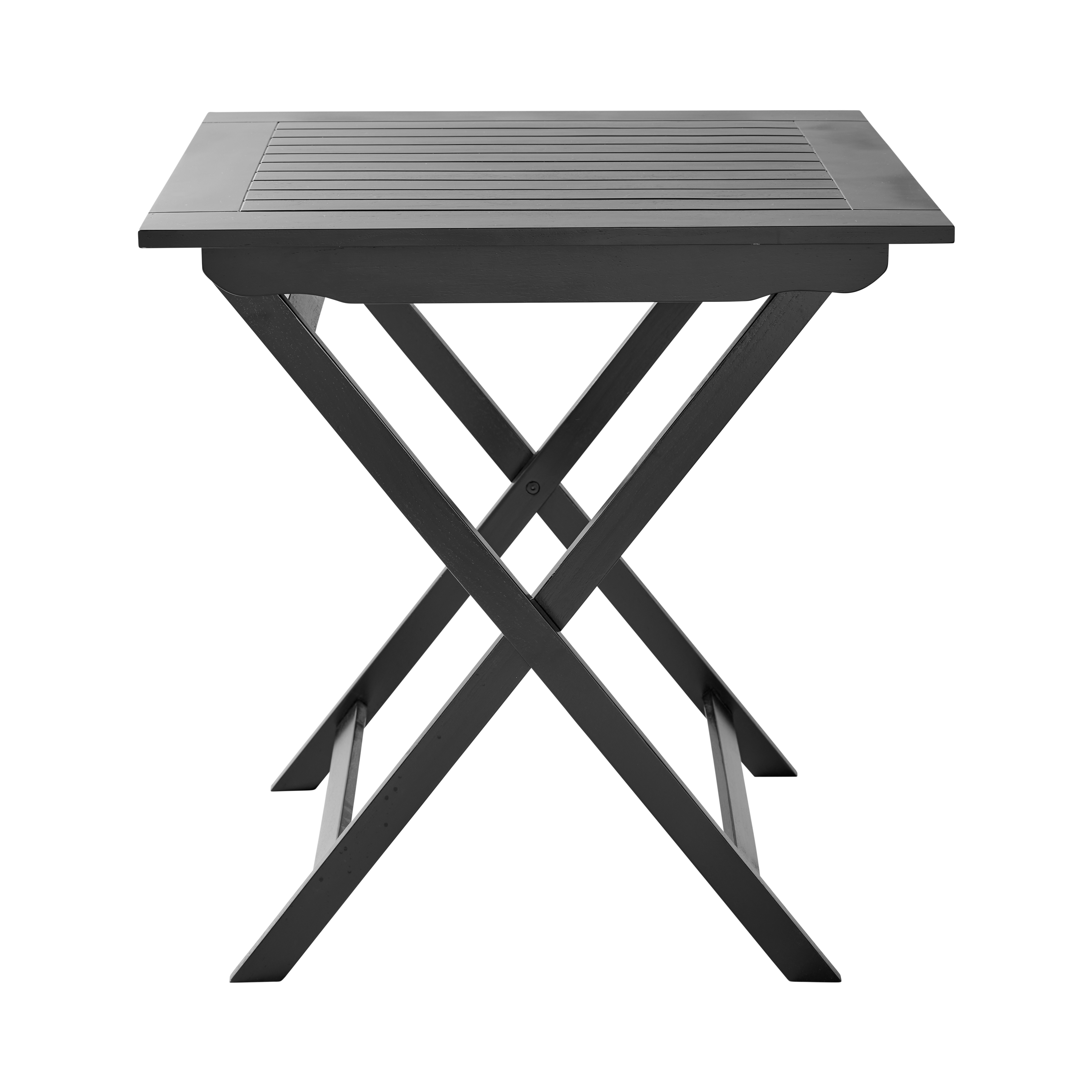 A light and elegant folding table in black-painted mahogany, ideal for small balconies, compact terraces and intimate outdoor spaces where flexibility and Nordic simplicity are at the forefront.
