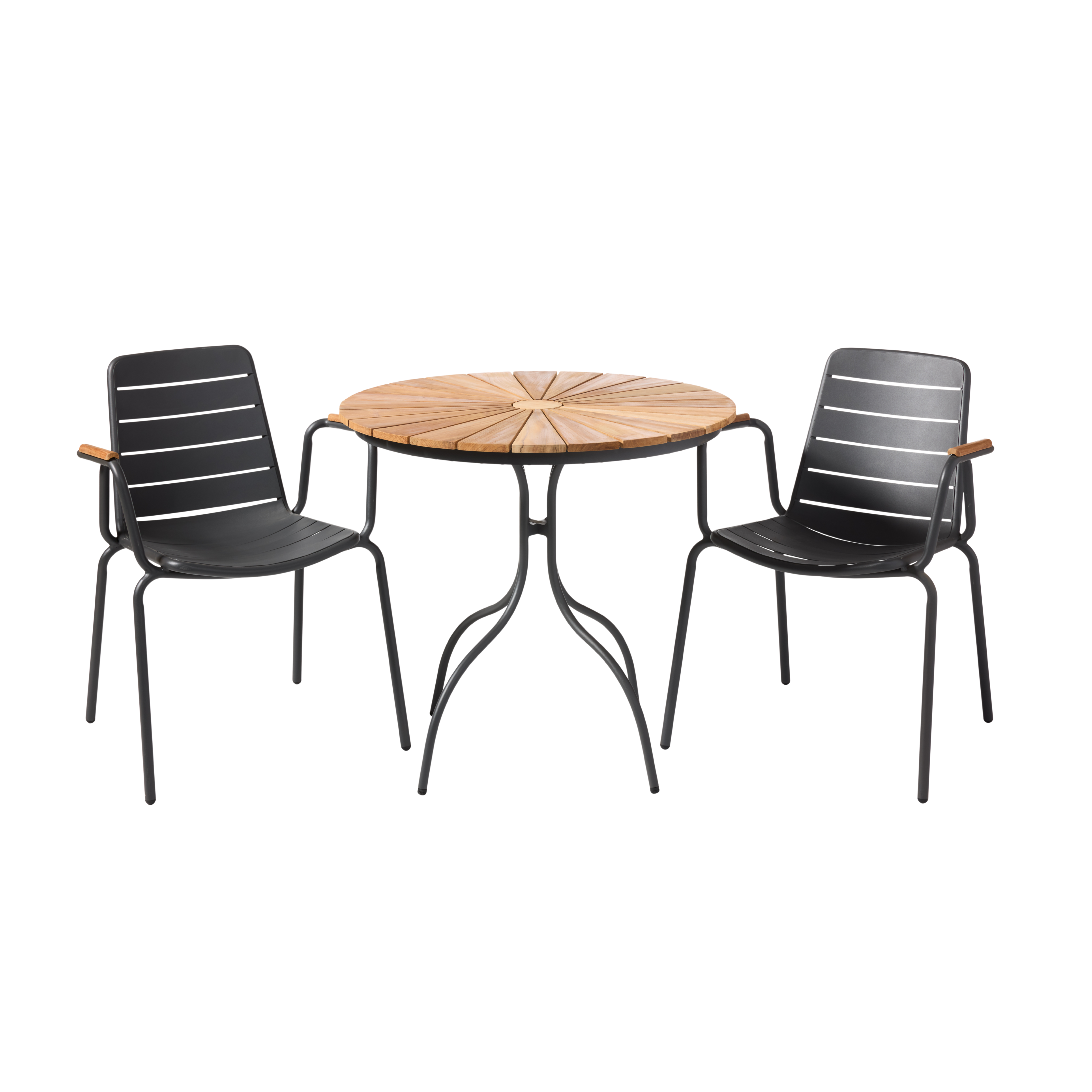 A café set with a hint of boulevard life – where the warmth of teak meets anthracite-grey elegance, and everyday pauses are given a little more space.
