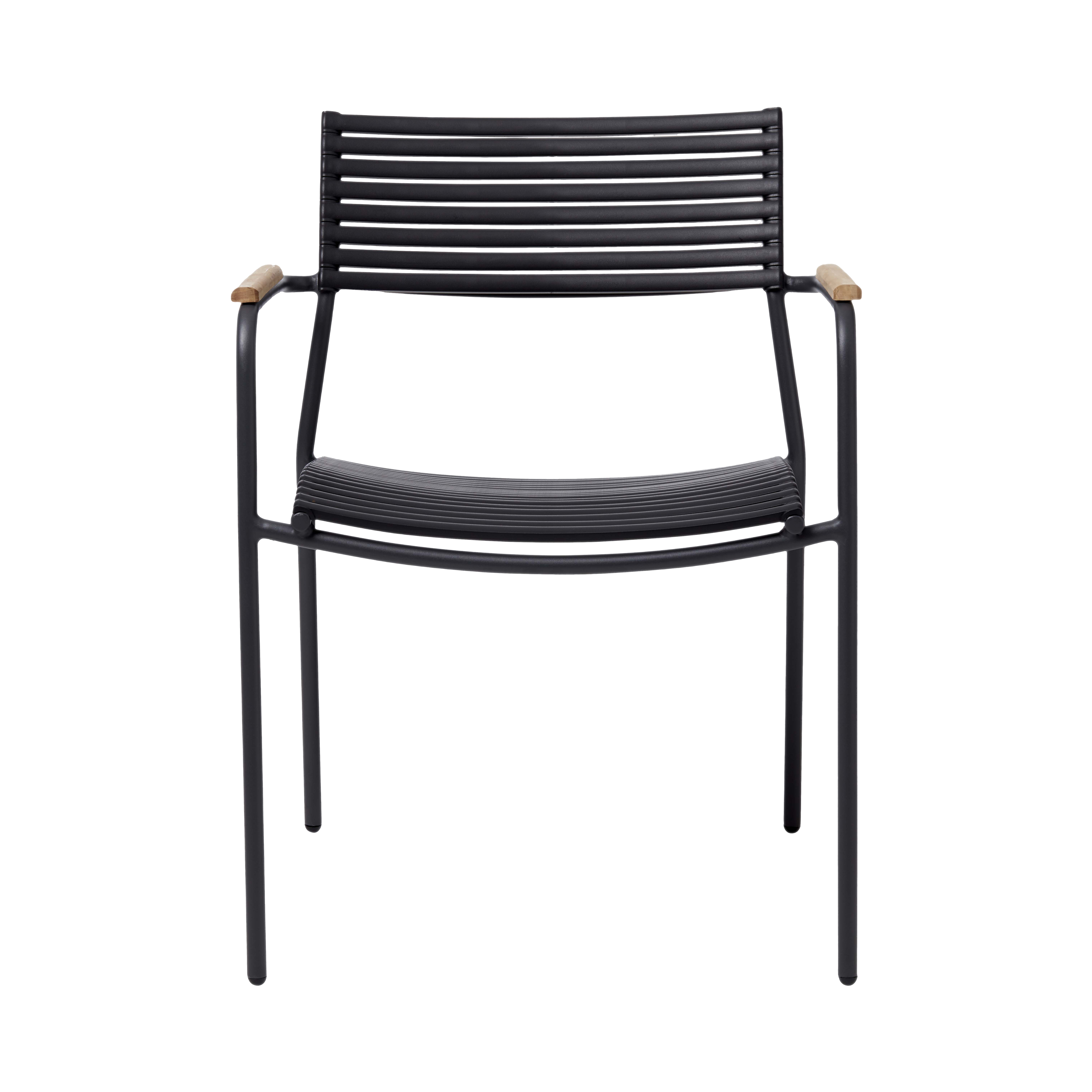 The anthracite aluminium frame provides strength and durability, while the teak armrests add warmth and natural patina over time. The slim black PP slats give the chair an elegant and modern silhouette — a visual lightness that lifts the outdoor space without dominating it.
