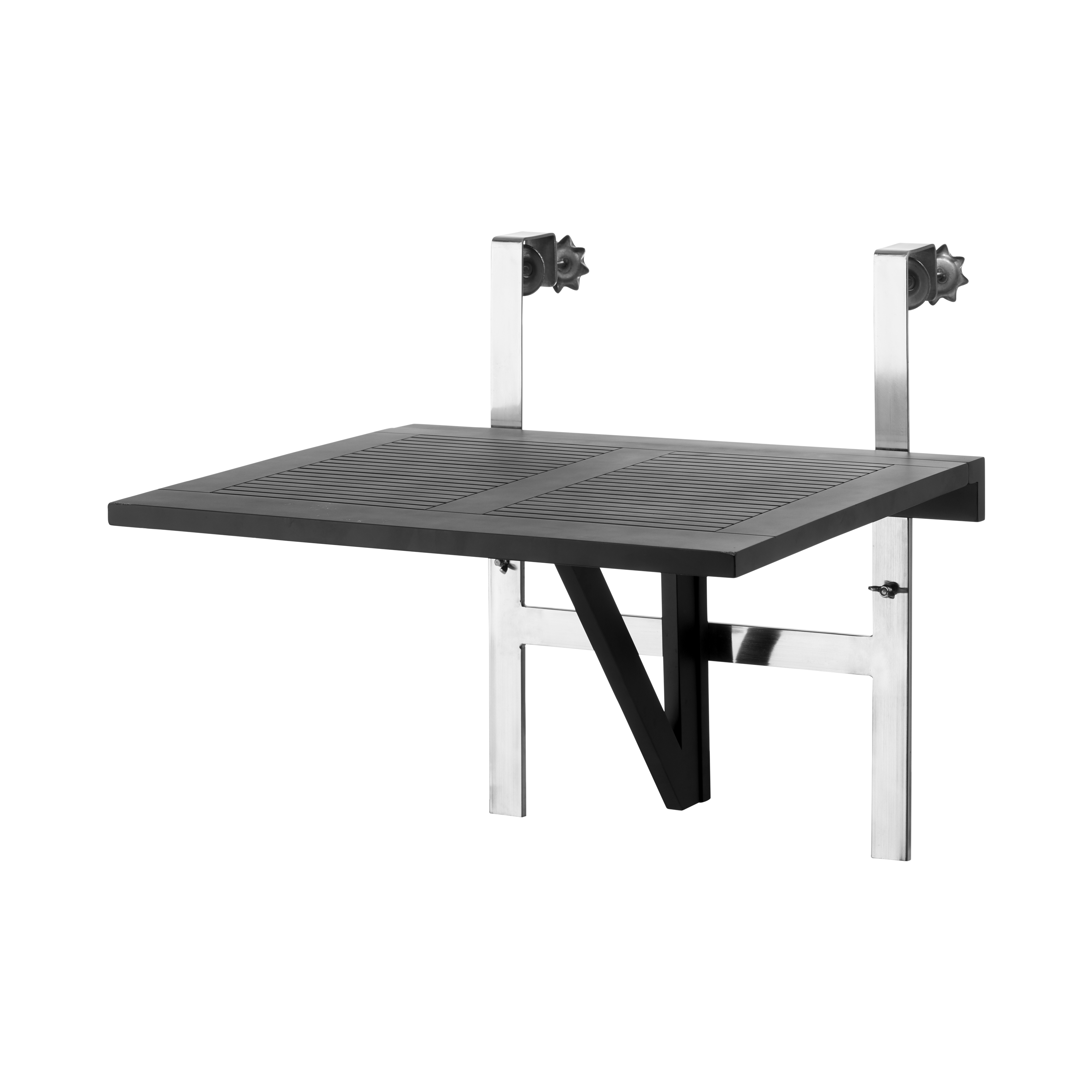 The table mounts directly onto the balcony railing and can be height-adjusted to suit different needs and surroundings. When not in use, it folds down easily to free up space – ideal for smaller balconies and urban outdoor spaces.