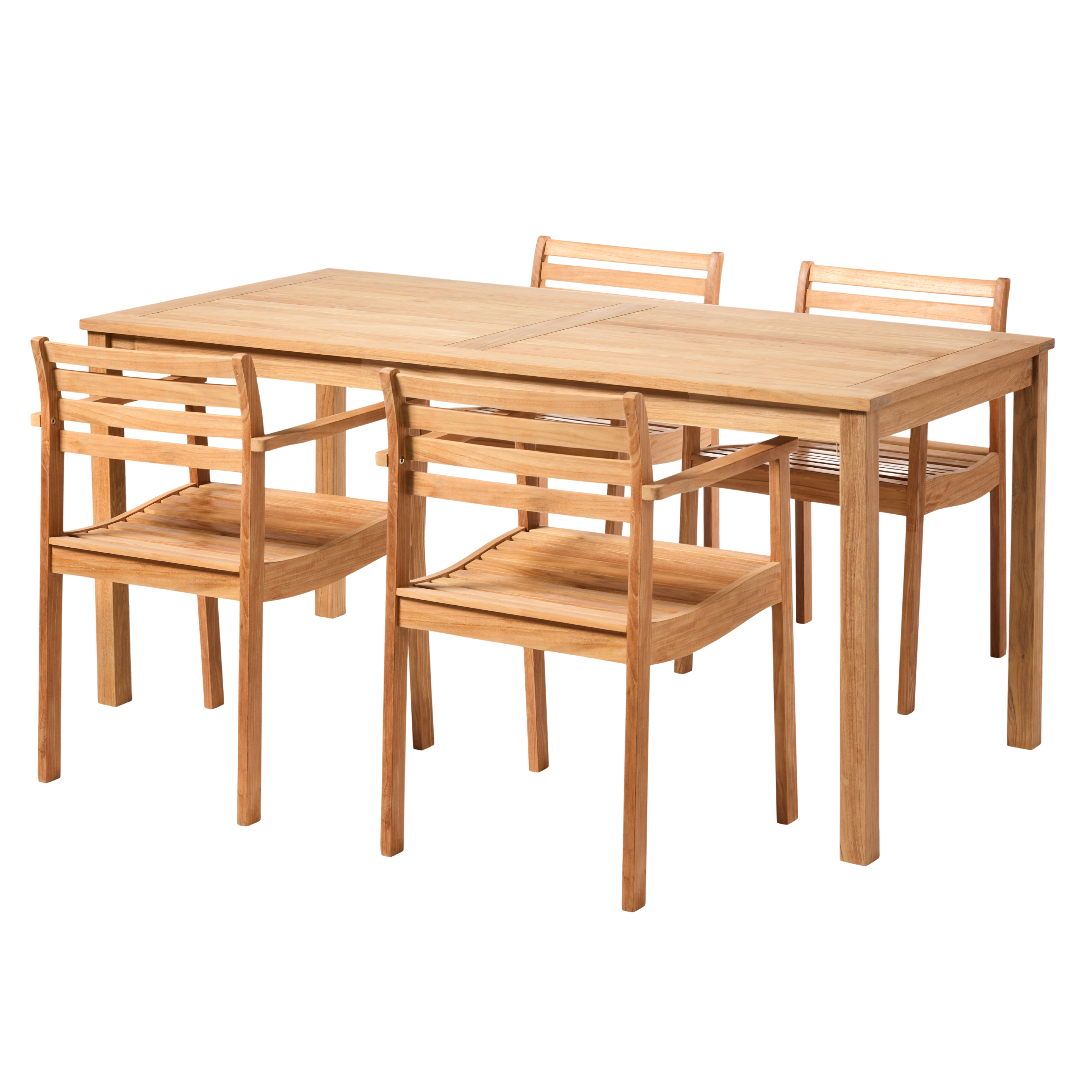 The table and four chairs feature clean lines and a harmonious design language that naturally complements well-kept gardens, quiet terraces and open outdoor spaces with room to breathe.