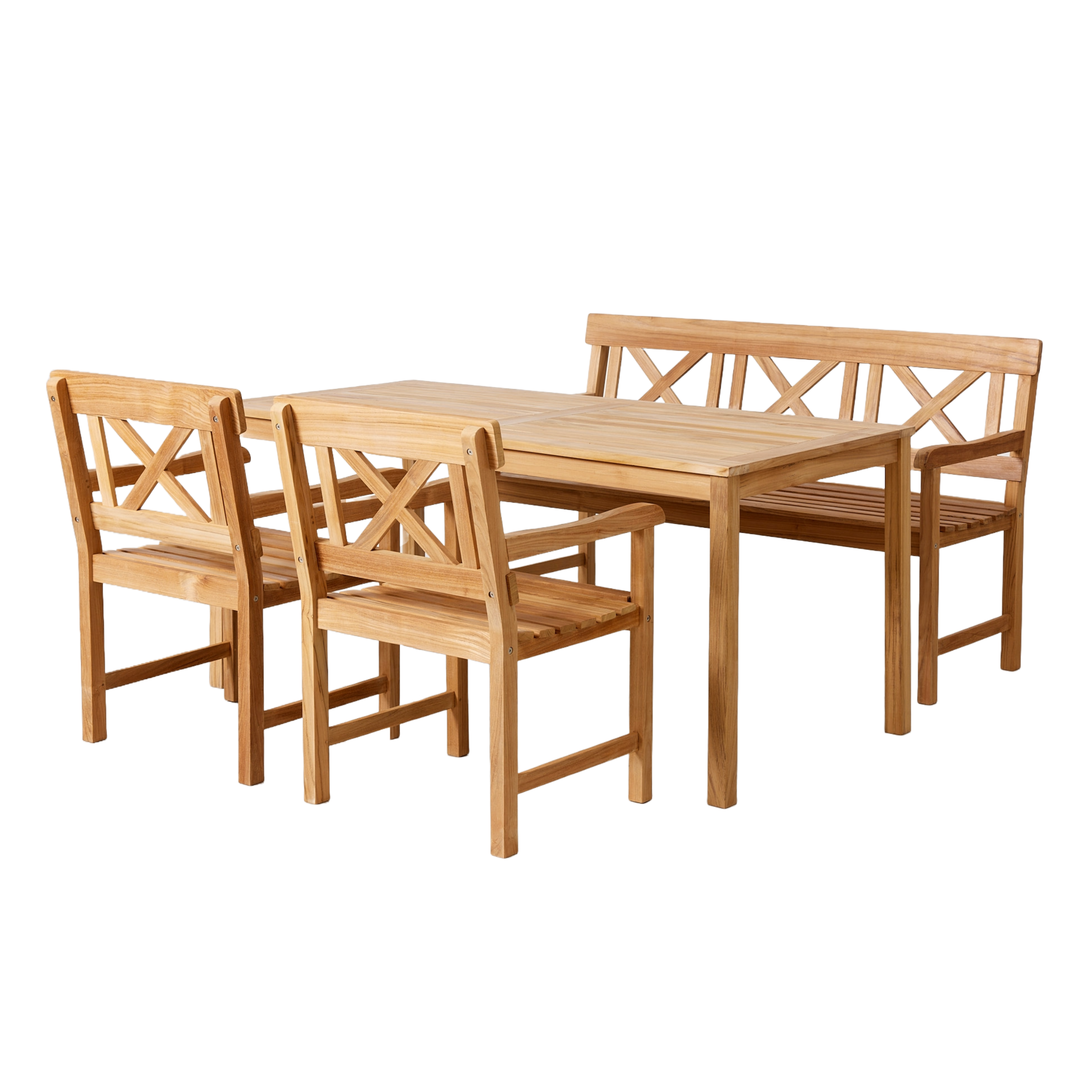 A classic teak garden set with soft lines and a generous design language. The Sofiero set consists of a table, a spacious three-seater bench and two chairs – created for calm moments, togetherness and everyday life outdoors.