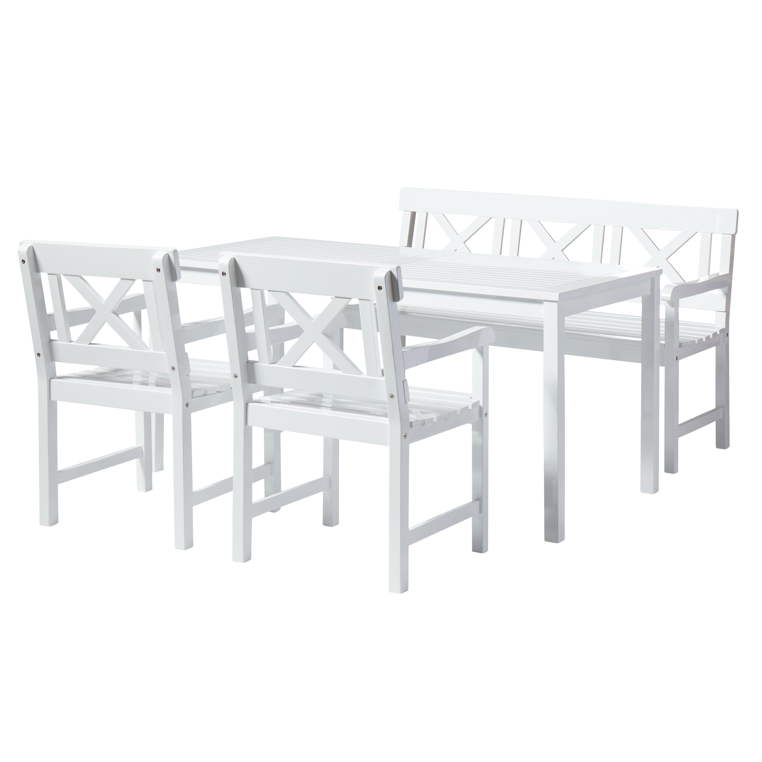 Sofiero Set - Three-Seater Bench, Two Chairs & Table - White