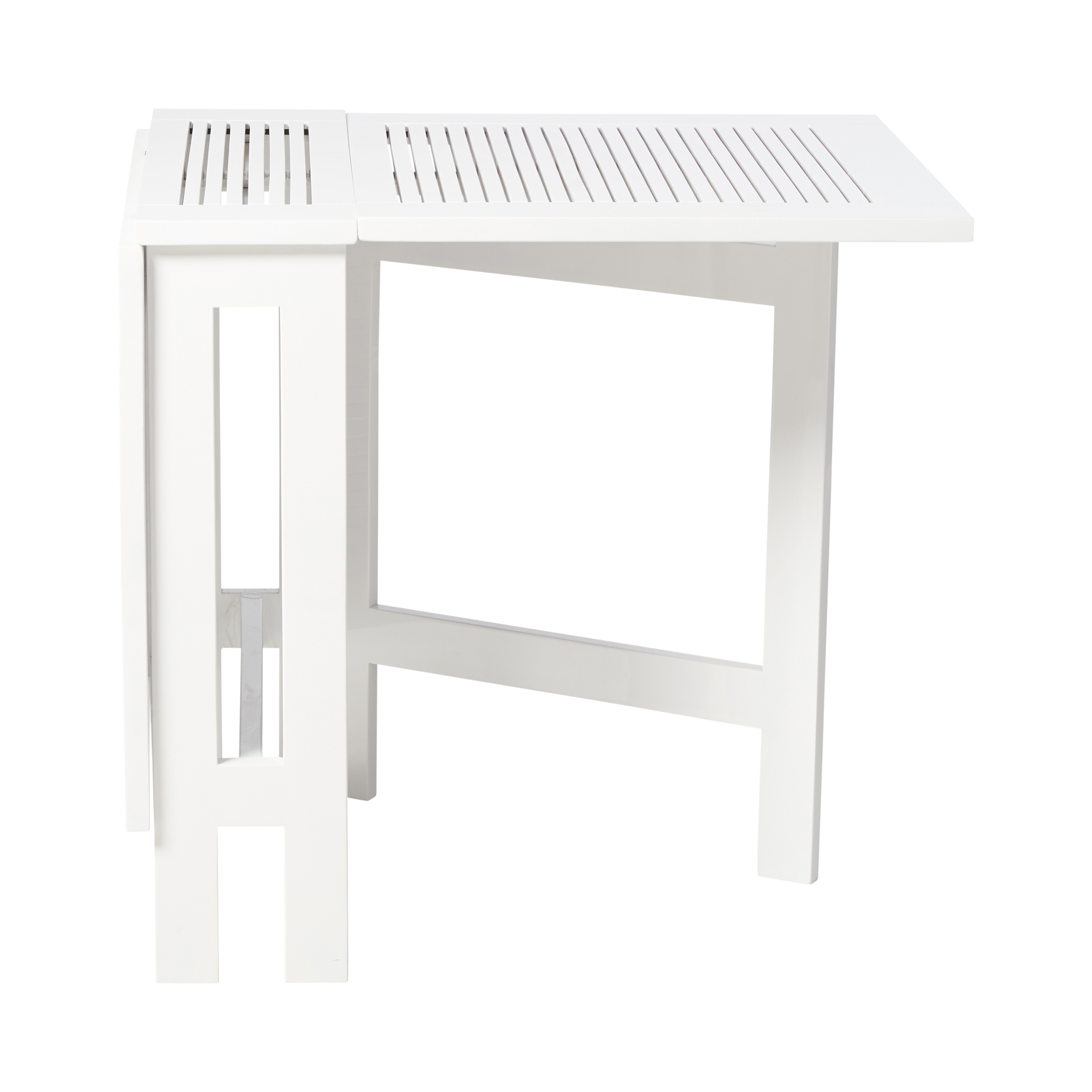 An elegant and flexible rectangular folding table in white-painted mahogany — created for outdoor spaces with varying needs, where the table can take up little space, a bit more, or a lot.
