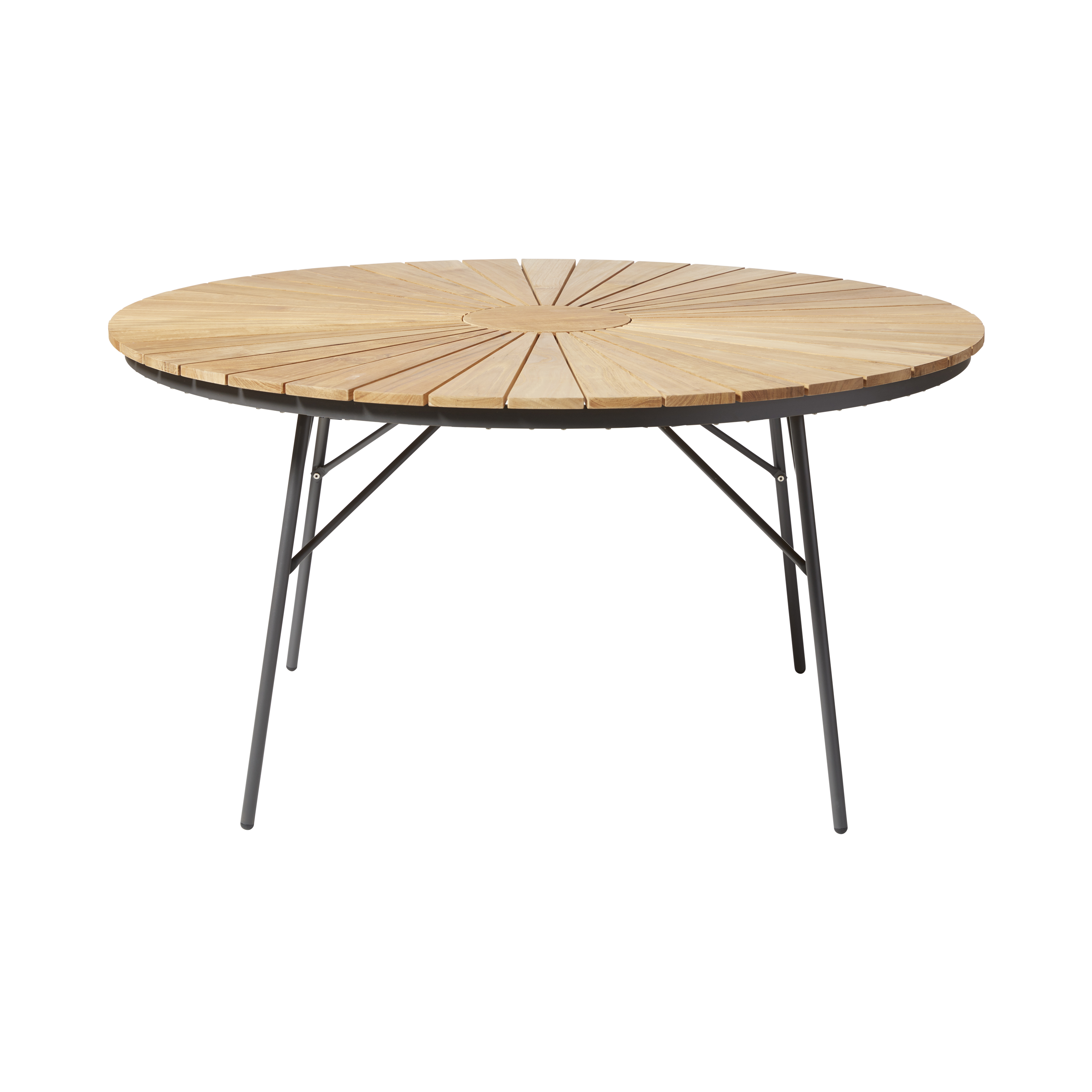 The tabletop is made of warm teak slats, and the construction is both sturdy and lightweight. When the season is over, or you need the space for something else, the table can easily be folded and stored away.