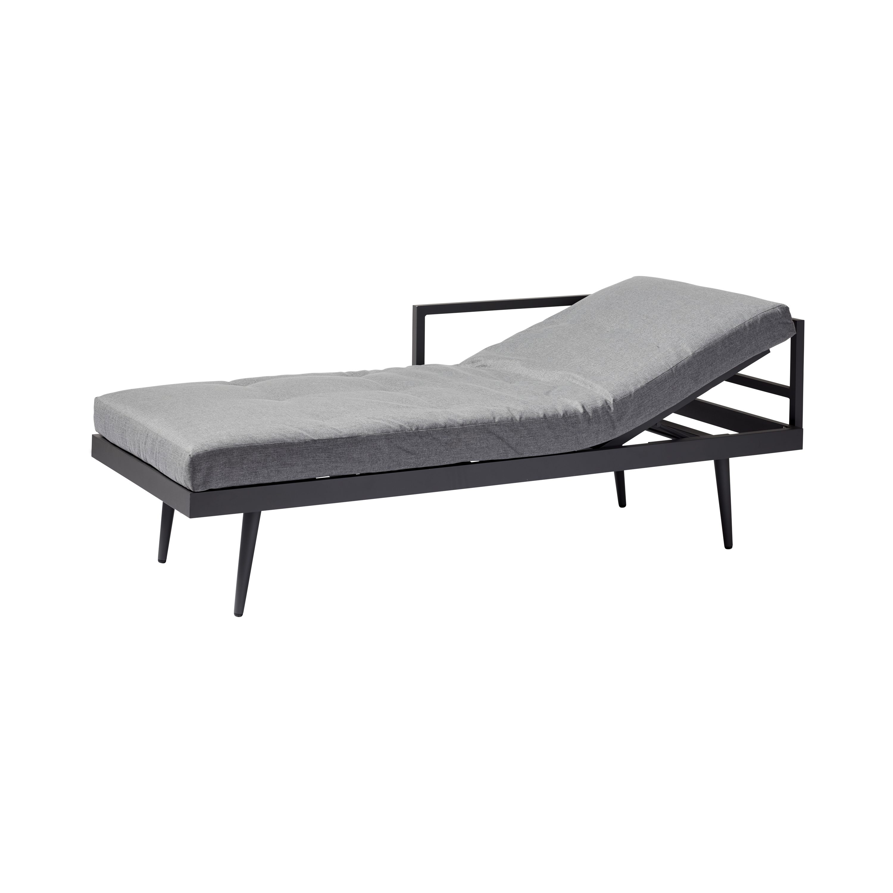 Available in several variants – shown here with an anthracite-coloured aluminium frame and grey polyester cushions.