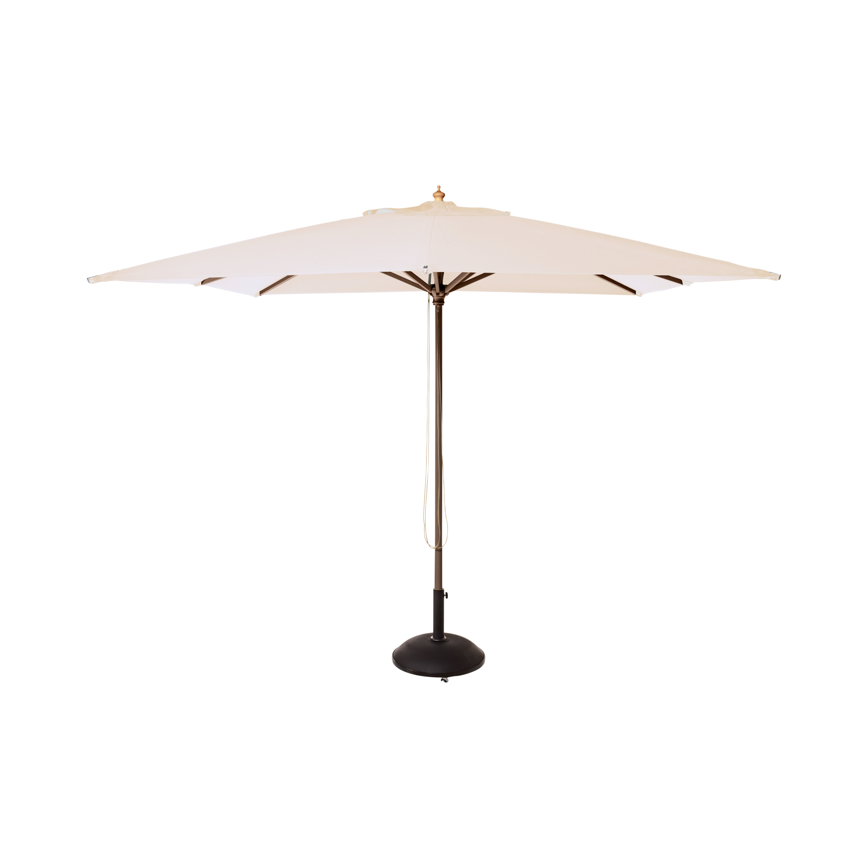 The canopy is made from colourfast olefin – a strong and durable material that retains its beautiful colour over time and offers reliable sun protection. The solid centre pole in wood with a teak-coloured finish adds warmth and natural character to the design and is built for everyday outdoor use.
