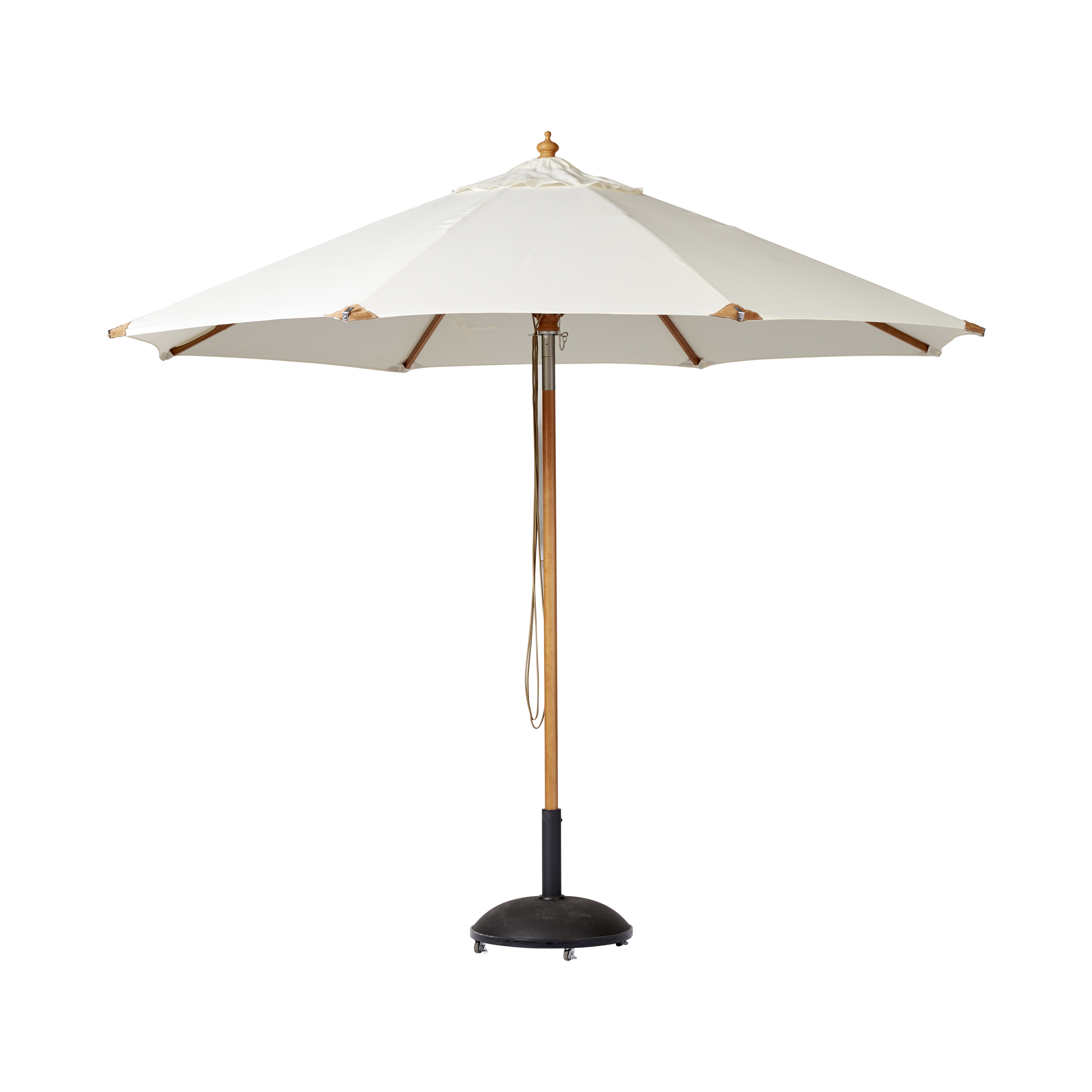 Pomino is easy to open using the cord/pulley system, and the stable construction ensures the parasol stands securely when opened.