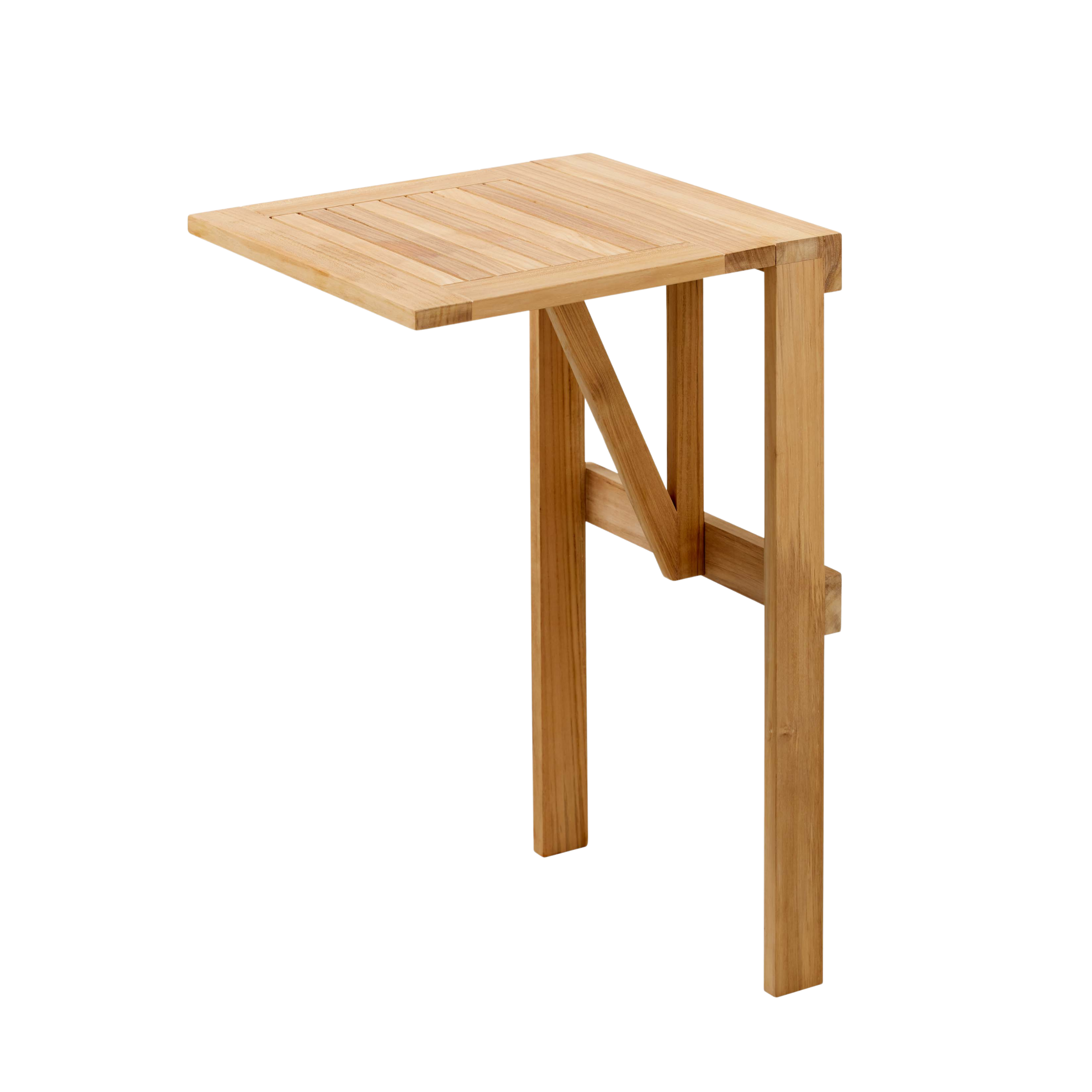 A functional and space-saving balcony table in solid teak, designed by Bertil Stam – created for smaller balconies where proportions, materials, and everyday use come together in a refined whole.