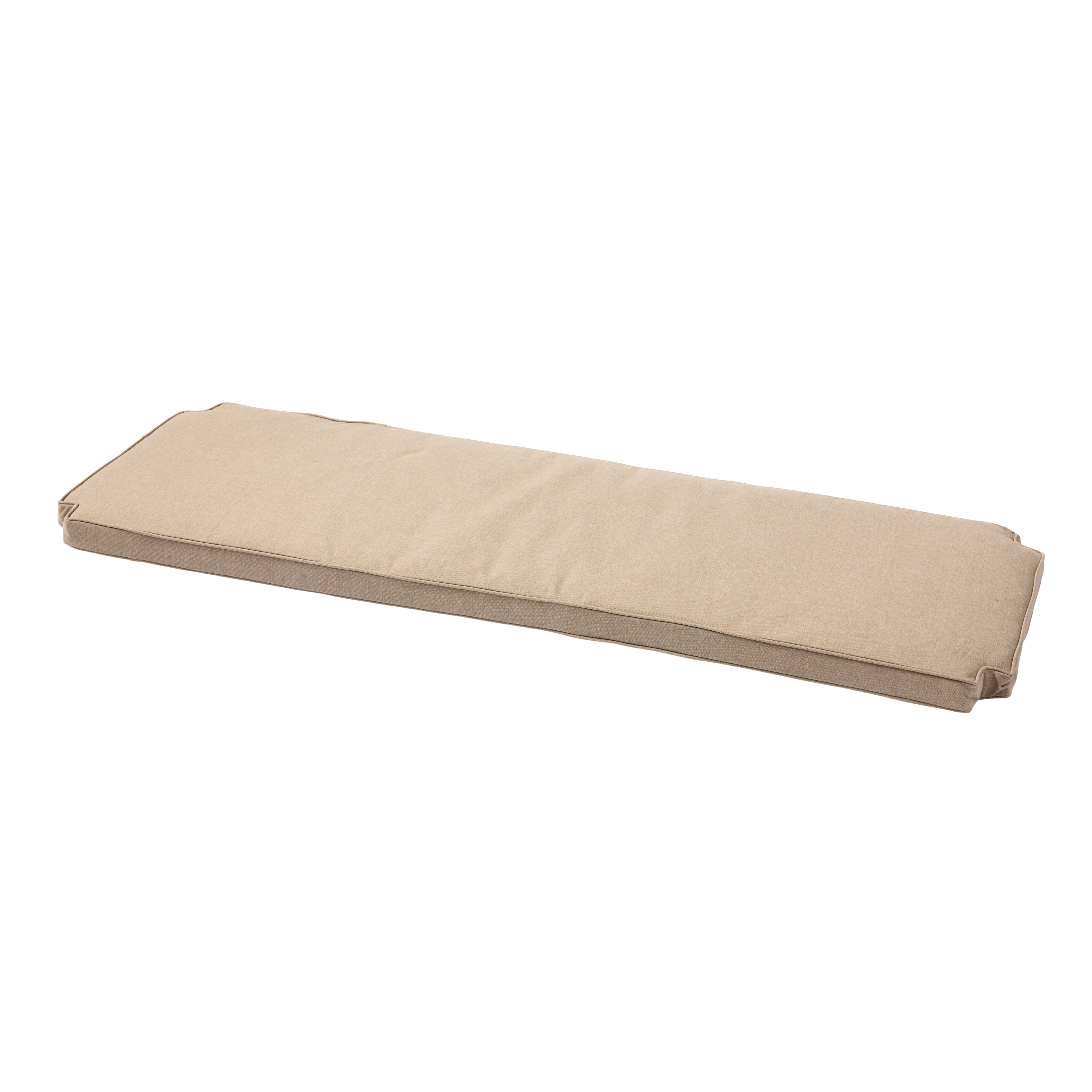 A comfortable cushion in a muted, sand-coloured shade, tailored to fit both the Rosenborg and Sofiero three-seater bench.