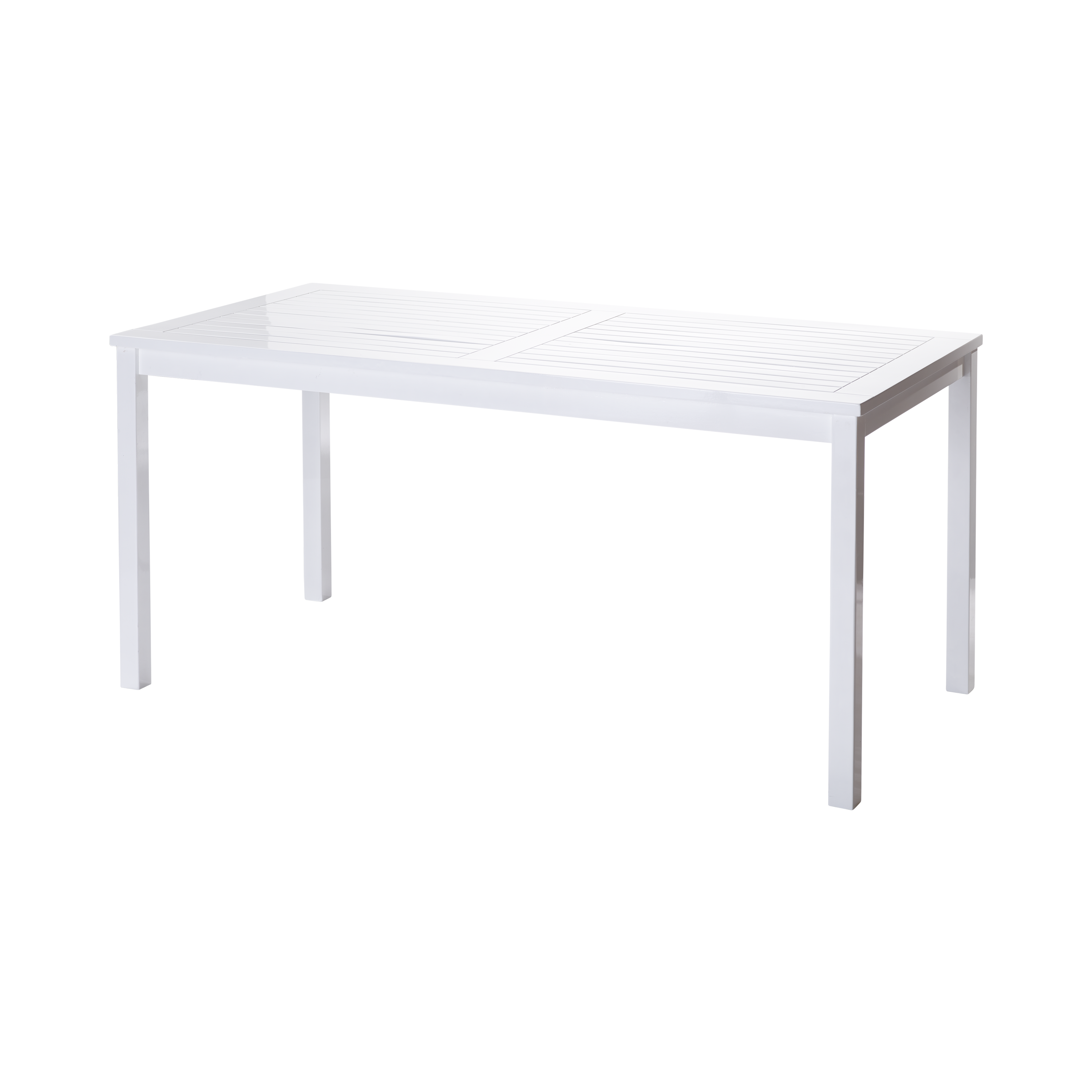 A timeless garden table in white-painted mahogany with clean lines and a harmonious expression — crafted in solid materials for everyday meals and relaxed moments outdoors.