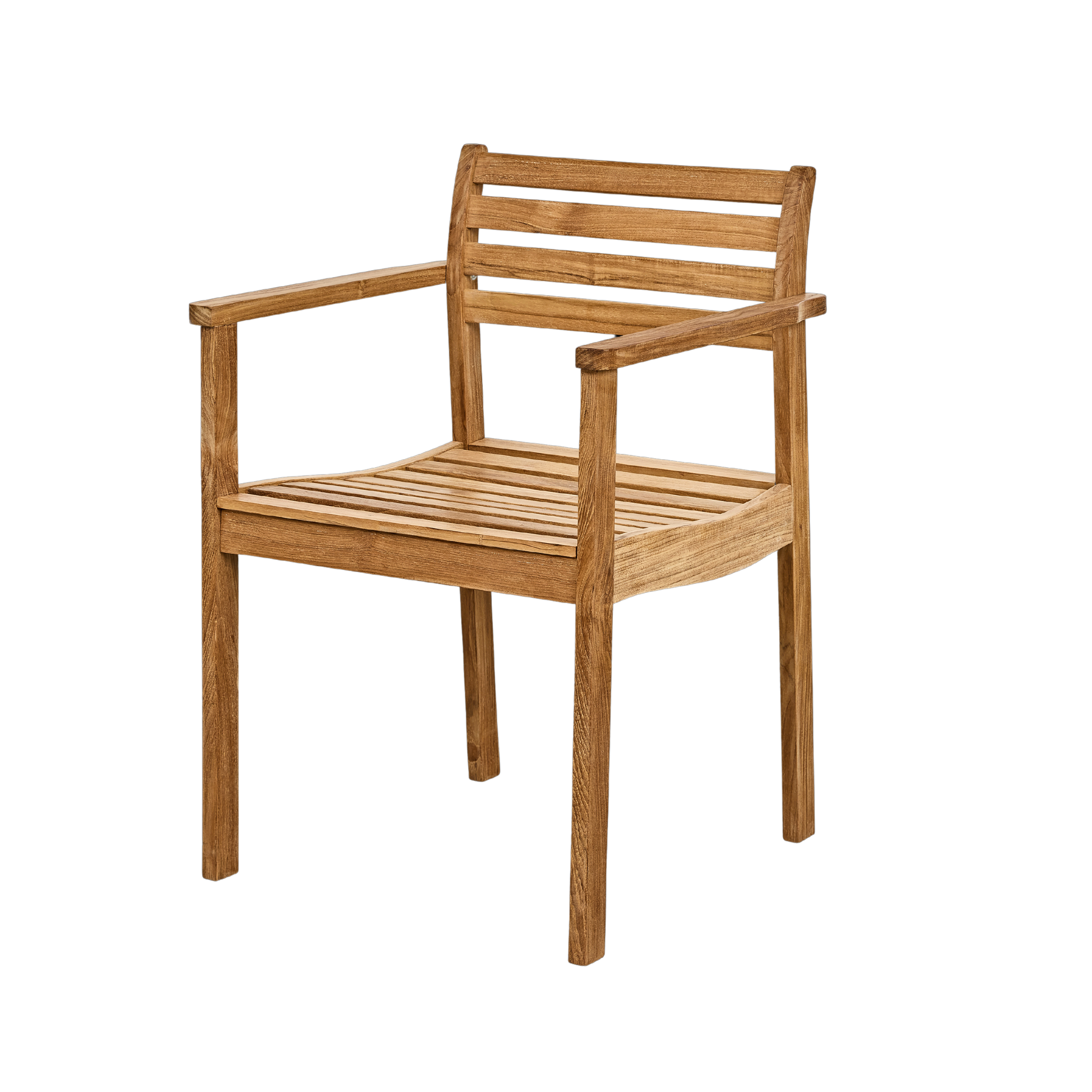 The chair is crafted in teak, where the wood’s beautiful grain stands out clearly and creates a lively surface with depth and character. Over time, the teak will patinate to a soft, silvery-grey tone if not regularly treated with oil – a natural process that adds warmth and character.